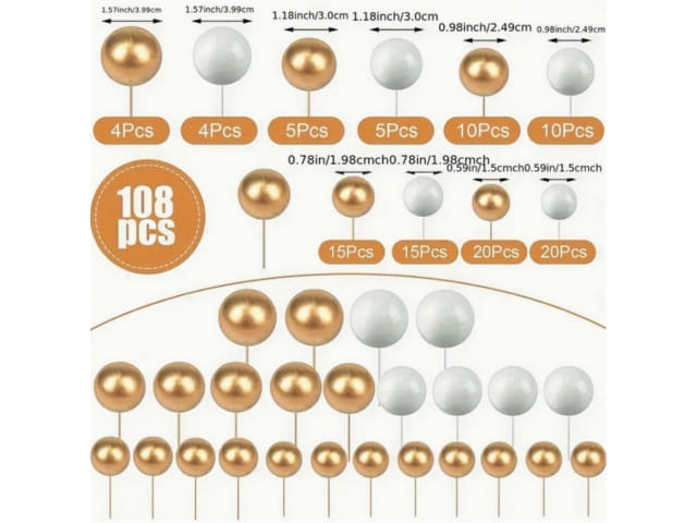 Set of ornaments gold and white balls 108pcs